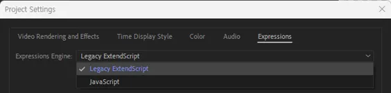Then go to Expressions and select ‘Legacy ExtendScript’.